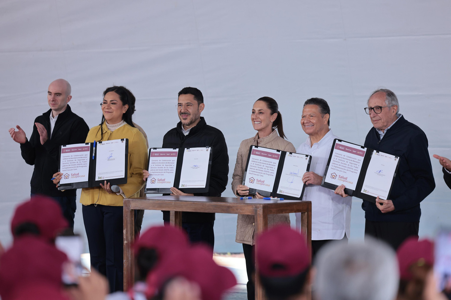 TEPEAPULCO, HIDALGO.- En Tepeapulco, Hidalgo, con la firma de la Presidenta Claudia Sheinbaum Pardo y el gobernador Julio Ramón Menchaca Salazar como testigos de honor, la secretaria de Bienestar Ariadna Montiel Reyes y el director general del Instituto de Seguridad y Servicios Sociales de los Trabajadores del Estado (ISSSTE), Martí Batres Guadarrama, suscribieron el convenio de colaboración para el programa Salud Casa por Casa, que tiene como propósito prevenir las enfermedades y dar seguimiento a la salud de los derechohabientes de las Pensiones para el Bienestar de los Adultos Mayores y Personas con Discapacidad en todo el país.