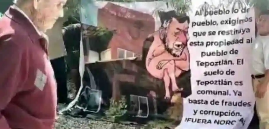 Un grupo de personas protestó durante unos minutos afuera del domicilio de Fernández Noroña para posteriormente dejar cartulinas con mensajes como “Lárgate, fuera Noroña”, “Morelos no te quiere”, “La tierra no se vende”, mostrando así su inconformidad tras darse a conocer que compró un domicilio valuado en más de 12 millones de pesos.