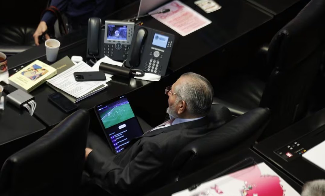 El coordinador de Morena en el Senado, causó indignación en redes sociales luego de que fue captado viendo un partido de futbol durante la sesión de este miércoles en el Senado.