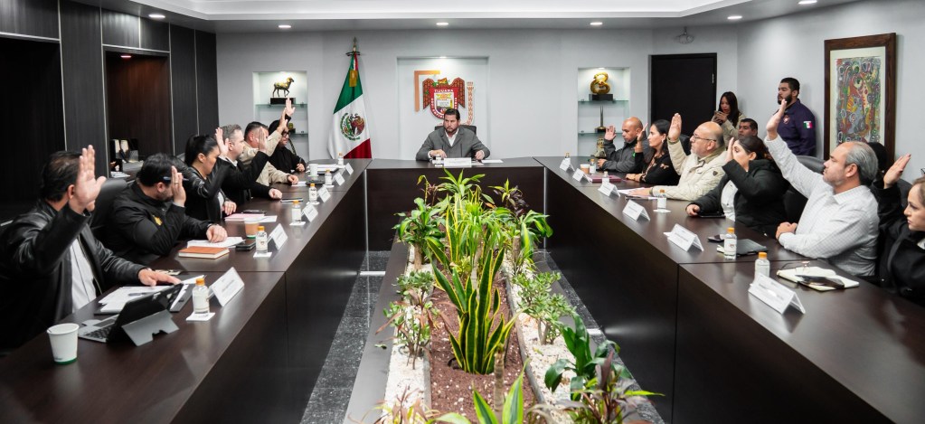 Durante la sesión extraordinaria estuvieron presentes el secretario de Seguridad y Protección Ciudadana Municipal, José Alejandro Avilés Amezcua; la secretaria de Desarrollo Territorial y Urbano, Virginia Vargas González; la secretaria de Bienestar, Wendy Ontiveros González; la coordinadora de Gabinete, Leticia Vidrio Moreno.