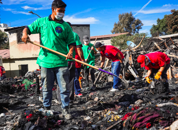 Tijuana, Baja California, a 18 de enero de 2026. Este domingo, el gobierno del presidente municipal Ismael Burgueño Ruiz, mantiene las labores de atención, acompañamiento y apoyo a las familias afectadas por el incendio registrado el sábado 17 de enero en la colonia Rancho Las Flores.