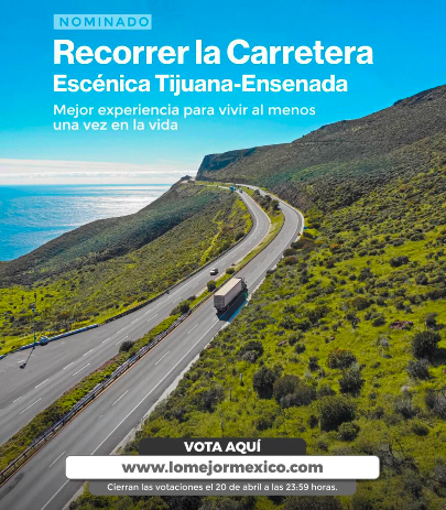 A la par, los bajacalifornianos también pueden apoyar al Estado en los rubros de Mejor experiencia de lujo y bienestar, con los viñedos del Valle de Guadalupe; Mejor destino que es una joya oculta, con Bahía de los Ángeles; y Mejor experiencia para vivir al menos una vez en la vida, con el recorrido por la Carretera Escénica Tijuana-Ensenada.