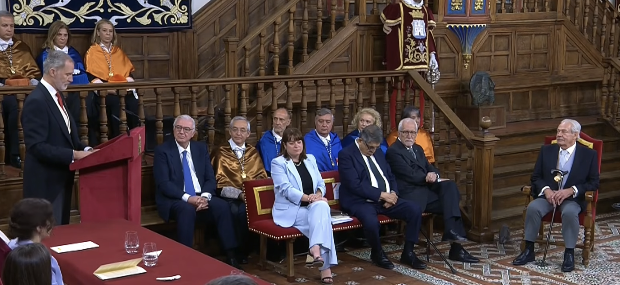 Los reyes Felipe VI y Letizia presidieron la ceremonia celebrada en el paraninfo de la Universidad de Alcalá de Henares, en Madrid, en la que se entregó el máximo galardón de las letras españolas a Celorio (Ciudad de México, 1948), séptimo escritor mexicano premiado con el Cervantes.